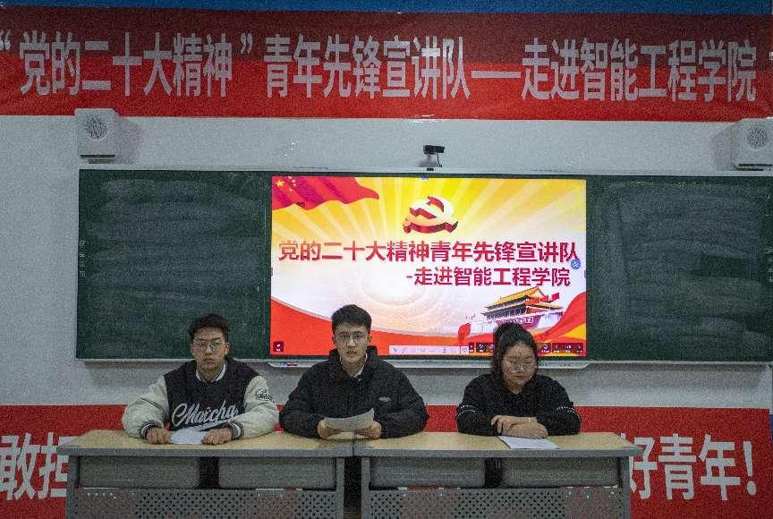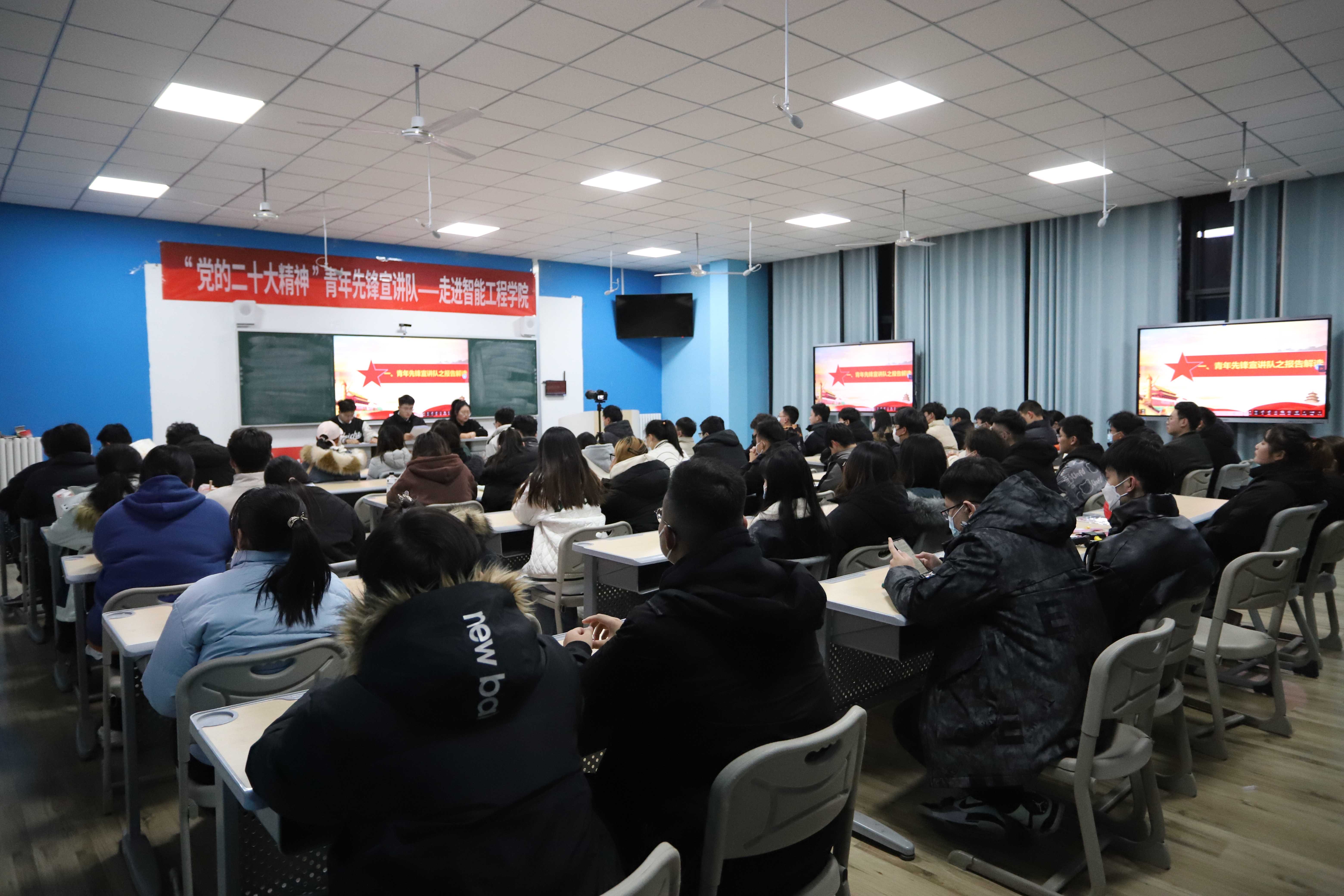 12月10日,泰山科技学院党的二十大精神大学生宣讲团走进智能工程学院,为智能工程学院100余名师生现场宣讲党的二十大精神。宣讲现场气氛热烈,学习氛围浓厚,活动取得实效。这是大学生宣讲团11月中旬成立以来,进班级、进宿舍、进学院、进书院宣讲党的二十大精神的又一个生动缩影。
