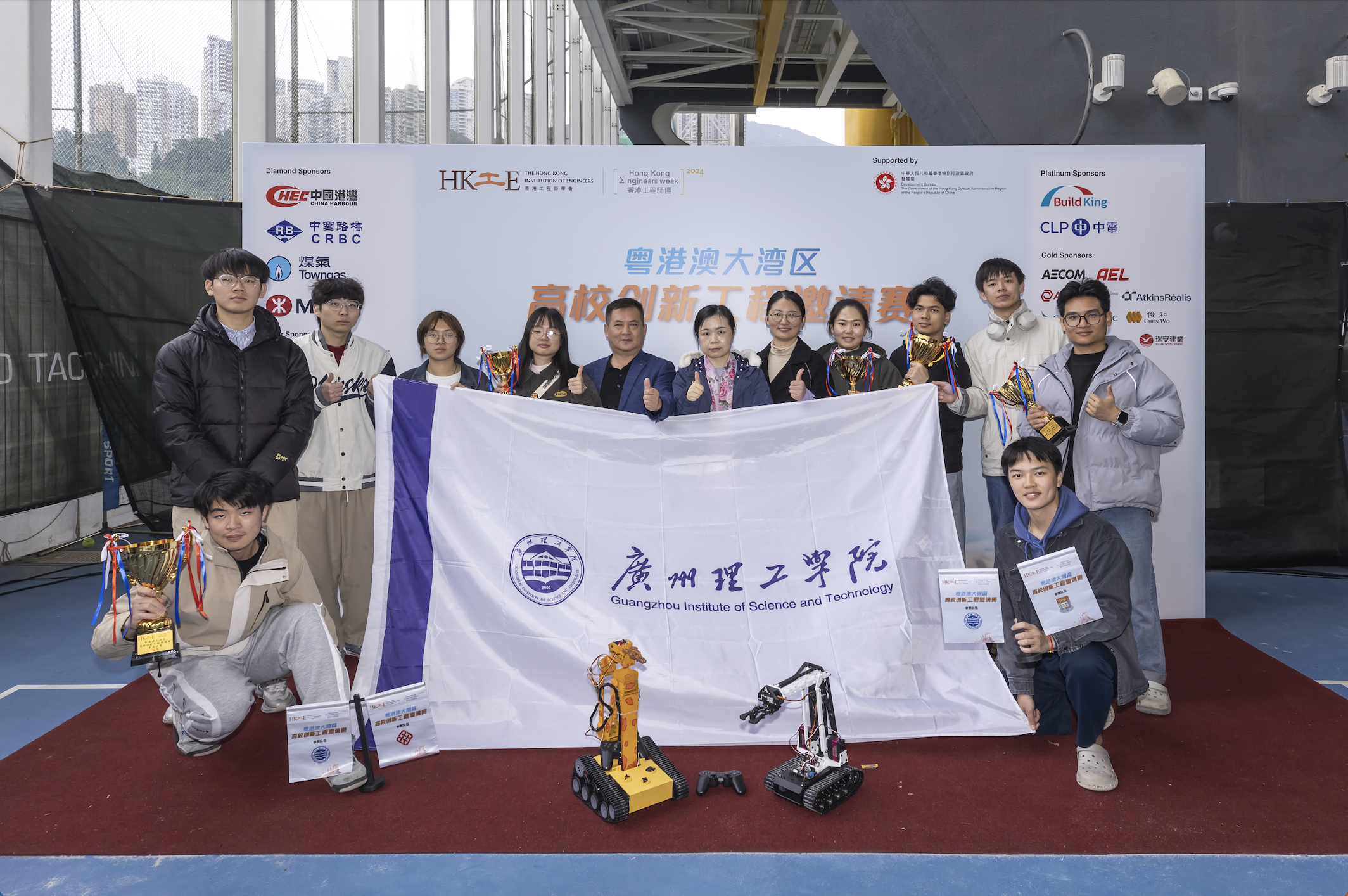 (张德福 高敏)2024年3月9日,广州理工学院应香港工程师学会邀请,组织智能制造与电气工程学院的两支队伍参加在香港举行的“香港工程师周 2024 粤港澳大湾区高校创新工程邀请赛”。比赛邀请内地和香港的高校工程系学生联队参赛,各支队伍需要设计遥控车、机械臂和桥梁,在桥梁上两台遥控车机械手完成旗帜的交接,其中一台遥控车再把旗帜运到沙堡最高端,以争夺奖项。经过联队紧锣密鼓的密切合作,香港大学-广州理工学院 A 队组成的联队获得冠军,香港理工大学-广州理工学院 B 队获得亚军。